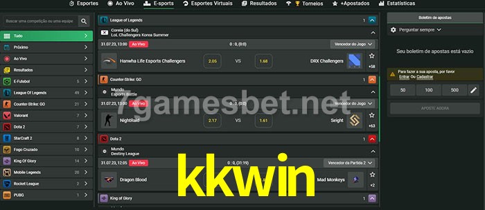 O kkwin oferece uma grande seleção de opções de apostas em e-sports com probabilidades competitivas